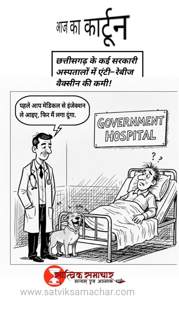 आज का कार्टून :- इन्जेक्शन 13 September 2025 by Shailendra Sahu हमारे WhatsApp Group से जुड़ें 👉 Join Now छत्तीसगढ़ के कई सरकारी अस्पतालों में एंटी–रेबीज वैक्सीन की कमी!